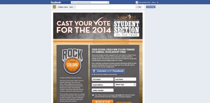 How To Enter : During Voting and Sweepstakes Phases 1 and 2 of the Contest Period, you can participate in the Contest and Sweepstakes by visiting the “College Colors” Facebook page at www.facebook.com/collegecolors. You may also visit http://www.mystudentsectionrocks.com from your web-enabled mobile device. Then, follow the links and instructions to complete and submit the registration form, including a valid email address. Then, during either Voting and Sweepstakes Phase 1 or 2, follow the directions to vote on the best college basketball student section from among the schools which have been listed in the online gallery. You will automatically receive one (1) entry into the Sweepstakes for voting. Two hundred fifty five (255) schools will appear in the online gallery during Voting Phase 1 and sixteen (16) schools will appear in the online gallery during Voting Phase 2.