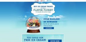 Buy ice creams treats and enjoy a flavor flurry of rewards all summer long! Plus, register now at FlavorFlurry.com and you could win free ice cream for a year!
